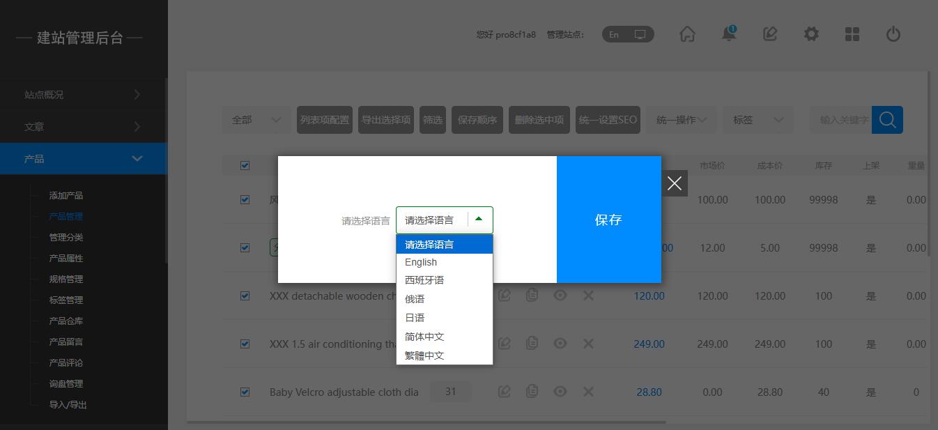 产品跨多语言站点批量复制(建站全版本)